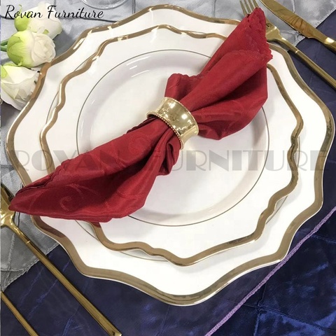 卸売人気食器リムホワイトセラミックディナープレートゴールドウェディングミニマリストパーティーチャージャープレートプレート皿不規則